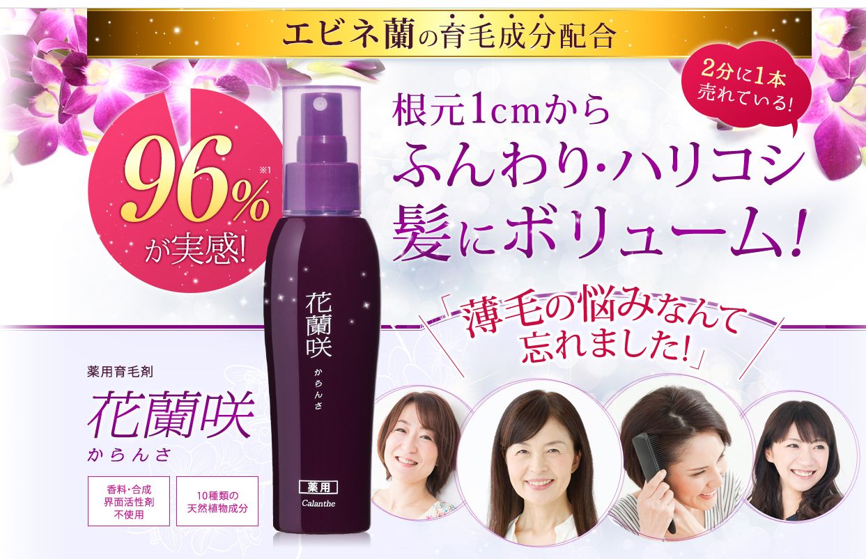 花蘭咲は91%が育毛を実感したという実力派の女性用育毛剤です。